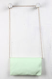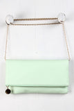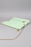 This chic clutch bag features a top zipper with magnetic flap closure, one zipper pocket underneath the flap, lined interior with one zipper pocket, and detachable shoulder chain strap. Shoulder strap has 21.5" Drop.