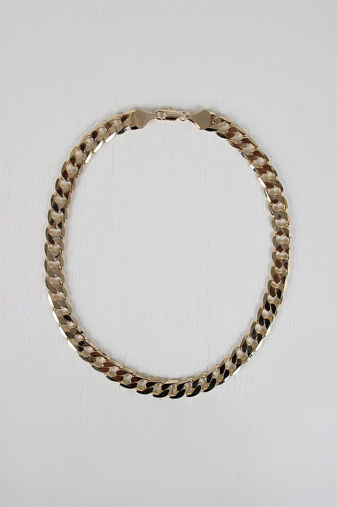This simple necklace features a flattened curb link chain, high polish finish and a lobster claw closure.
