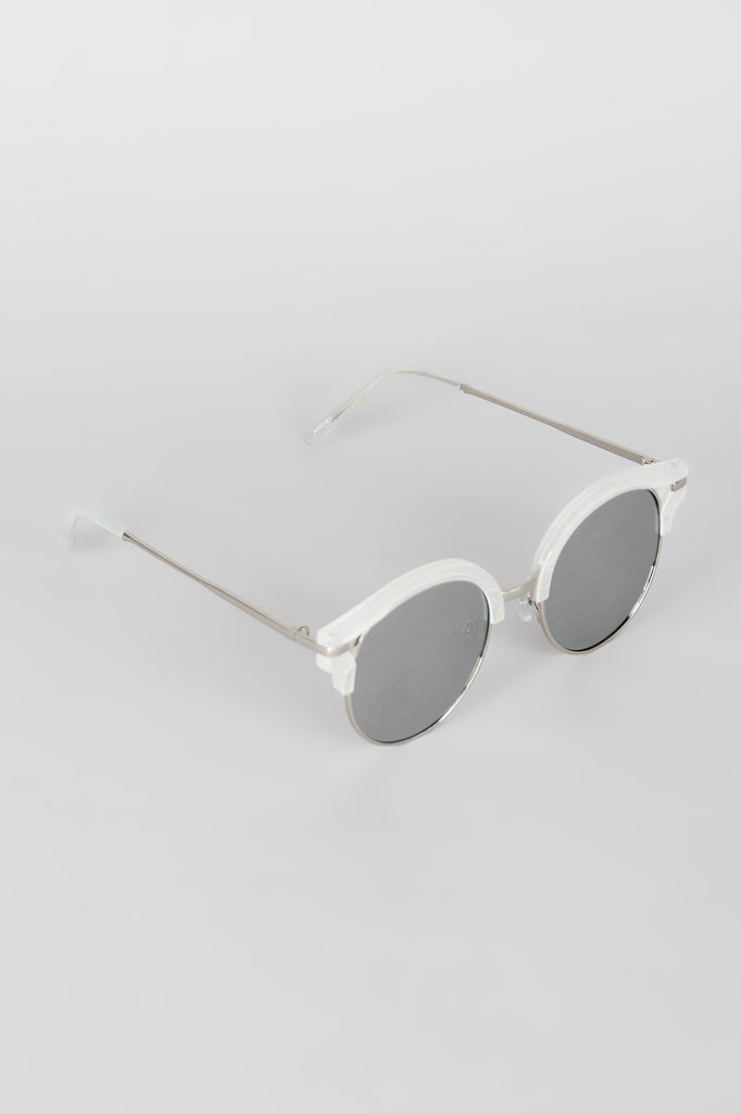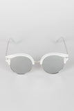 These sunglasses feature a contrasting metal and plastic frames, cat eye with cutout detail, and nose cushions.