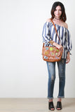This statement bag features a vegan leather fabrication, mini messenger bag design. fun graphic patch details, magnetic snap closure, fully lined, with a zipper pocket in lining and an adjustable buckle strap.