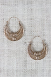 These chic earrings feature a dangle earring design, decorative cut out crescent shape, and a latch back hooks.