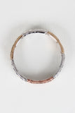 This bracelet features elephant designs etched onto metal rectangle beads and easy slip on elastic construction.