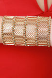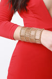 This elasticized cuff bracelet features high-polish metallic frame, diamond grid panels, and small round beads.