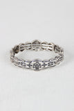 This Navajo inspired bracelet features a, elastic design, brushed metal finish with pictures of birds and arrows etched on it.