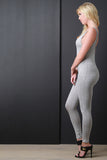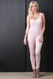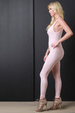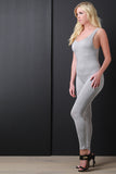 This jumpsuit features soft stretch jersey knit, scoop neckline, deep scoop back, and taper cut legs. Accessories sold separately. Made in U.S.A. 95% Rayon, 5% Spandex.