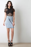 This bodysuit features a crisscross neckline, short sleeve construction and fishnet mesh fabrication throughout. Finished with a double button closure at the crotch. Accessories sold separately. Self: 95% Polyester, 5% Spandex. Contrast: 100% Polyester.