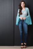 This Vintage design, featuring full bell long sleeves. Scoop neckline with a key hole button back closure. Bodysuit has bottom snap button closures. Undergarments not included. Accessories sold separately. Made in U.S.A. 92% Nylon. 8% Spandex.