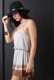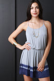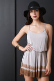 This romper features dip dye jersey knit, spaghetti straps, elasticized waist, and back keyhole cutout with single button closure. Accessories sold separately. Made in USA. 96% Rayon, 4% Spandex.