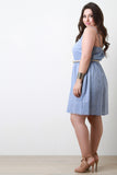 This striped knit fabrication, scooped neck with spaghetti shoulder straps, button up front, and gathered waistline with contrast belt. Accessories sold separately. Made in U.S.A. 100% Cotton.