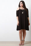 This plus size dress features an asymmetrical design, one off the shoulder sleeve with double spaghetti straps, one regular half sleeve, soft knit fabrication, finished with a flowy shift dress fit. Accessories sold separately. 97% Rayon, 3% Spandex.