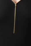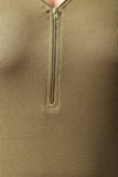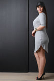This plus size dress features an adjustable zippered v neckline, thermal knit fabrication, half sleeves, finished with a rounded hemline. Accessories sold separately. 97% Rayon, 3% Spandex.