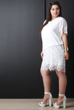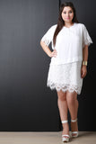 This stylish dress features a woven knit fabrication with contrasting crochet lace bottom, round neckline with button up design, and short sleeves fit. Finished with an underlay lining and relaxed fit. Accessories sold separately. 95% Rayon, 5% Cotton.