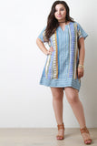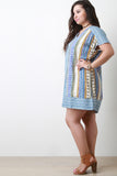 This beautiful plus size features a tribal print fabrication, split v-neckline, cap sleeves, shift cut fit, and high low hem. Accessories sold separately. 100% Rayon.