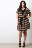 This plus size dress features a lightweight chiffon, geometric patterned prints, short sleeves design, and chained round neckline with macrame fringe accents. Finished with a cinched waist line and contrasting self-tie sash. Accessories sold separately. 100% Rayon.