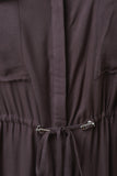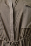 This plus size maxi dress features button-up front, round neckline, two breast pockets, self-tie drawstring at waist, and side slits. Accessories sold separately. 100% Rayon.