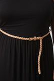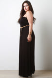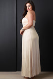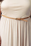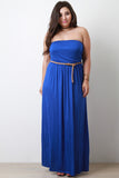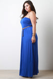 This plus size dress is maxi silhouette with an elasticized tube top upper. Bust area is lined, remainder of dress is unlined. Relaxed cut. Soft knit. Features a detachable braided belt around elasticized waist. Accessories sold separately. 95% Rayon. 5% Spandex.