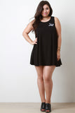 This plus size dress is trapeze silhouette with a scooped neck and sleeveless design. Soft knit. Flare cut. Unlined. Finish with a cat character print near open pocket. Accessories sold separately. 95% Rayon. 5% Spandex.