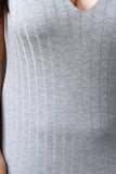 This plus size dress has a heathered and ribbed soft knit design, featuring full lining. Short sleeves and v-neck silhouette. Form fitting. Accessories sold separately. 95% Rayon. 5% Spandex. Lining: 100% Polyester.