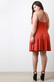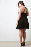 This plus size casual dress features a soft jersey knit, scoop neck, sleeveless design, strappy open back construction, and flare skirt. Accessories sold separately. 95% Rayon, 5% Spandex.