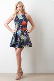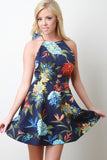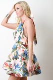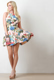 This skater dress features floral pattern print, sleeveless, halter neckline with a self-tie bow at nape, and a hidden zipper fastener at back. Accessories sold separately. 100% Polyester.