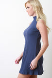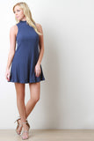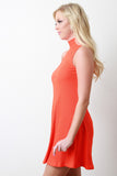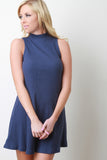This sleeveless dress features a mock neckline, shift cut fit, ribbed knit fabrication, and a zipper fastener at back. Accessories sold separately. 50% Rayon, 50% Polyester.