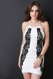 This sleeveless open back lace bodycon fit. Accessories sold separately. 100% Cotton.