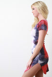 This refreshing dress features a tie dye fabrication, round neckline, short sleeves construction, and round hemline. Finished with slits on both sides. Accessories sold separately. Made in U.S.A. 95% Polyester, 5% Spandex.