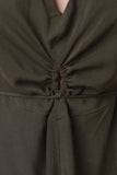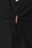 This maxi dress features a woven knit fabrication, deep v halter neckline, midsection cinched keyhole cutout, handkerchief hem, and two-way self-tie drawsting with shell detail. Accessories sold separately. 100% Rayon.