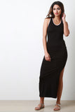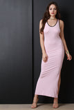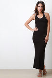 This maxi dress features soft jersey knit, scoop neckline, attached hood, side slit, and open back. Accessories sold separately. Made in U.S.A. 95% Rayon, 5% Spandex.