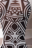 This chic dress features a mesh paneling design, with contrasting tribal print and solid panels, mock neckline, and longsleeves construction. Finished with a hidden rear zipper closure. Accessories sold separately. Made in U.S.A. 96% Polyester, 4% Spandex.