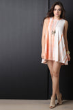 This jersey knit dress features a crew neckline, sleeveless, vertical tie-dye pattern, and trapeze cut fit. Accessories sold separately. 95% Rayon, 5% Spandex.