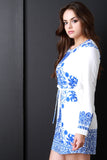 This chic dress features a bulgari print detail, round neckline, longsleeves design with button tab detail, self-tie thin waist strap, and mini-length hemline. Finished with an underlay. Accessories sold separately. 100% Polyester.