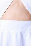 This beautiful dress features a crisscross v-neckline and front band covers, front and back triangle keyhole detail, and flare skirt. Finished with a lining. rear zip-up closures and midi length hemline. Accessories sold separately. 100% Cotton.