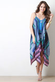 This dress features a v-neckline, adjustable spaghetti shoulder straps, handkerchief hemline, and bohemian pattern print design. Accessories sold separately. 100% Polyester.