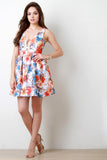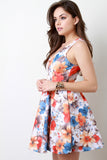 This beautiful dress features a smooth stretchy knit fabrication, colorful floral print pattern, plunging v-neckline with strap detail, and mini-length hemline. Finished with rear zip-up closure and skirt lining. Accessories sold separately. Made in U.S.A. 95% Polyester, 5% Spandex.