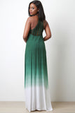 This beautiful maxi dress features a loose crochet knit racer back, v-neckline, and ombre dyed design. Accessories sold separately. 100% Rayon.