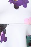 This maxi dress features neoprene fabric, floral print, short sleeves, and pleated high-low skirt. Finished with back zipper closure. Accessories sold separately. Made in USA. 96% Polyester, 4% Spandex.