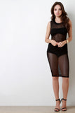 This daring dress features a fishnet mesh fabrication, sleeveless fit, wide armhole opening, and round neckline. Finished with a midi-length hemline and rear zipper fastener. Accessories sold separately. Made in U.S.A. 100% Polyester.
