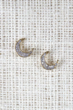 These crescent stud earrings feature a glittering rhinestone-encrusted front and post back.