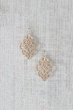 These dangle earring features a brushed metal finish, cut out filigree design. French hook backs.