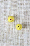 These quirky stud earrings feature a yellow sphere with a smiley face that has a heart eye on it, finished with post backs.