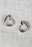 These modern earrings feature an abstract tear drop shape, with a flowing twisted design, and post backs.
