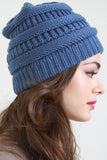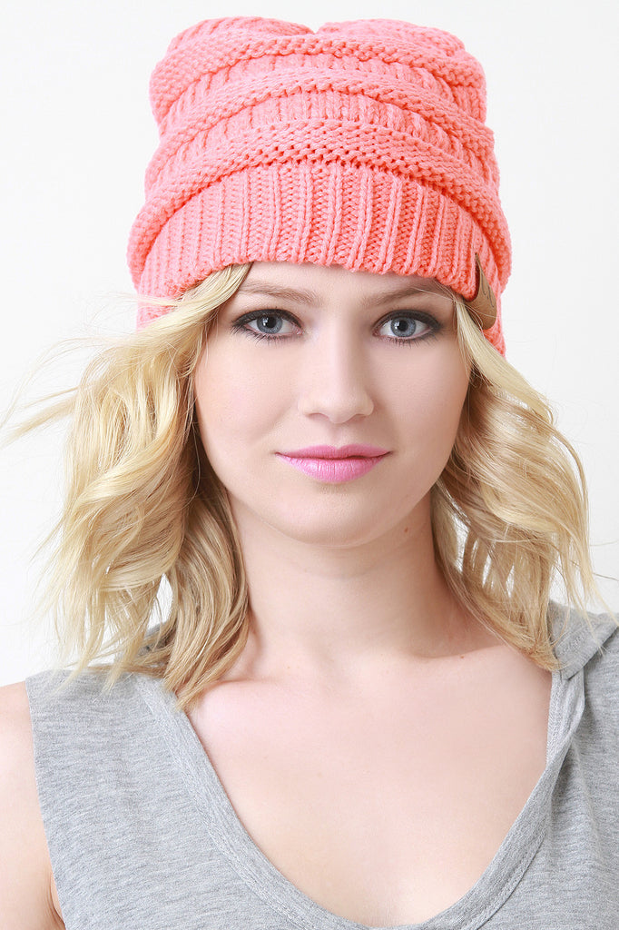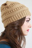 This stretch knit beanie features solid color on vertical cable knit with horizontal ridged design. One size fits most. 100% Acrylic.