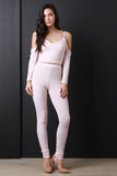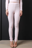 This high waist leggings features a rib knit fabrication, elasticized waistline, and stretchy taper cut legs. Accessories sold separately. Made in U.S.A. 95% Cotton, 5% Spandex.