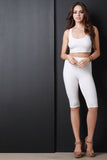 These leggings feature a thermal knit fabrication, wide elasticized waist band, and capri-length hemline. Accessories sold separately. Made in U.S.A. 95% Rayon, 5% Spandex.