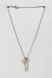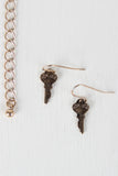 This necklace set features a key pendant with the word "blessed" stamped onto it, a ball chain with adjustable lobster claw closure, and matching tiny dangle key earrings.