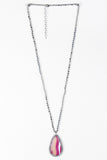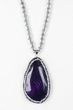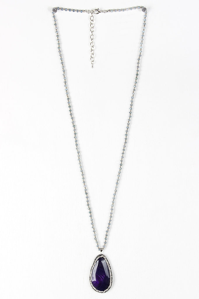 This shimmering necklace features an agate tear drop shaped stone surrounded by rhinestones on a beaded necklace. Finished with an adjustable lobster claw closure.