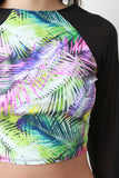 Long Sleeve Palm Leaf Rash Guard Cover Up Top
