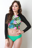Long Sleeve Leopard Floral Rash Guard Cover Up Top