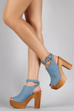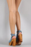 Denim Ankle Buckle Faux Wood Open Toe Heel